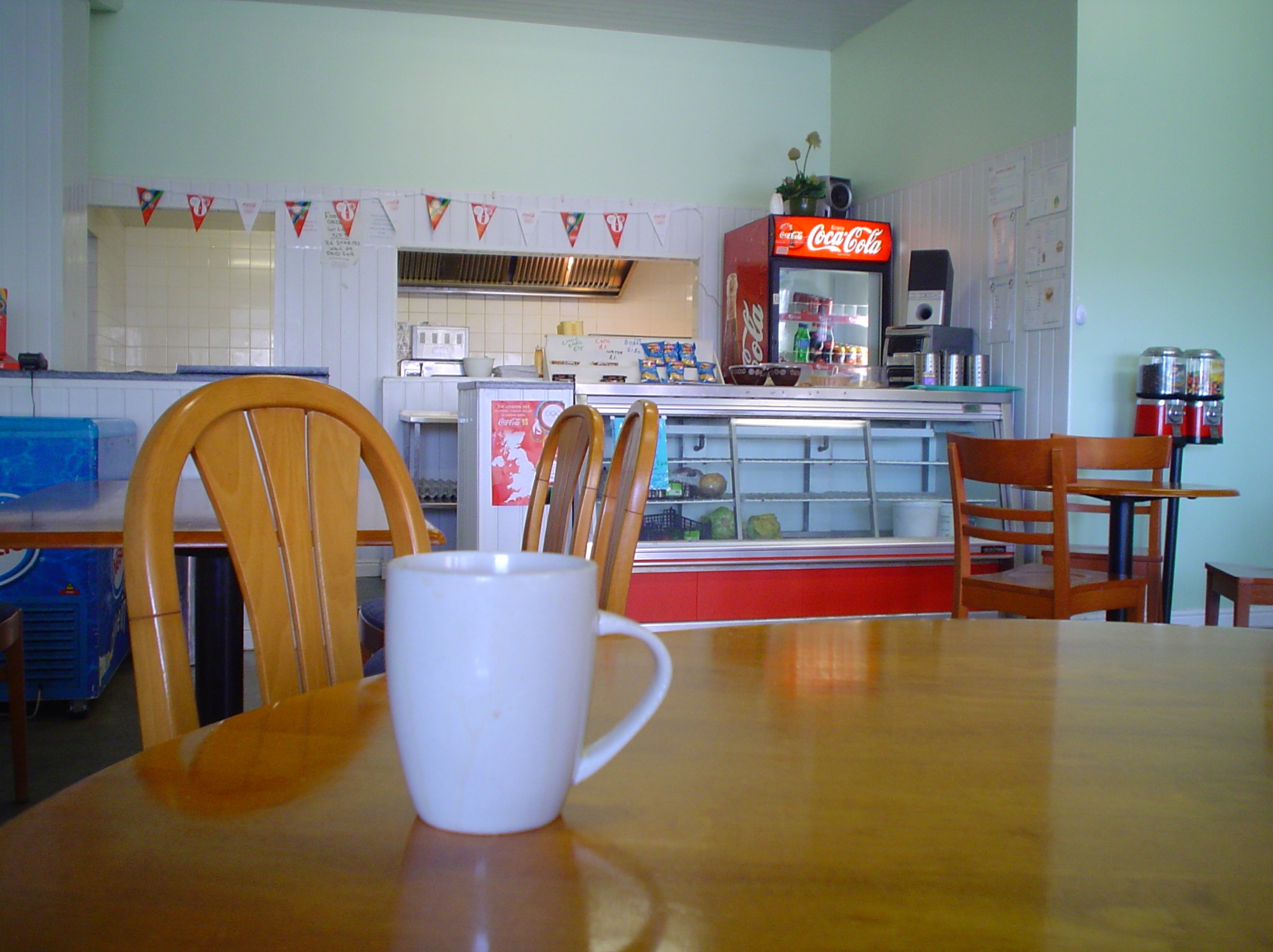 “It’s just like Brief Encounter”. There is an air of another time about this sad, run down establishment…the 1980’s. The chill counter holds cabbages and cauliflowers wrapped in Clingfilm. A selection of snacks displayed forlornly on the back shelf (Golden Wonder Cheese & Onion crisps & Mars Bars). A very tired looking selection of sweaty, unappealing cakes, sit mournfully beneath clear plastic covers on top of the counter. There is nothing appetising about the food.